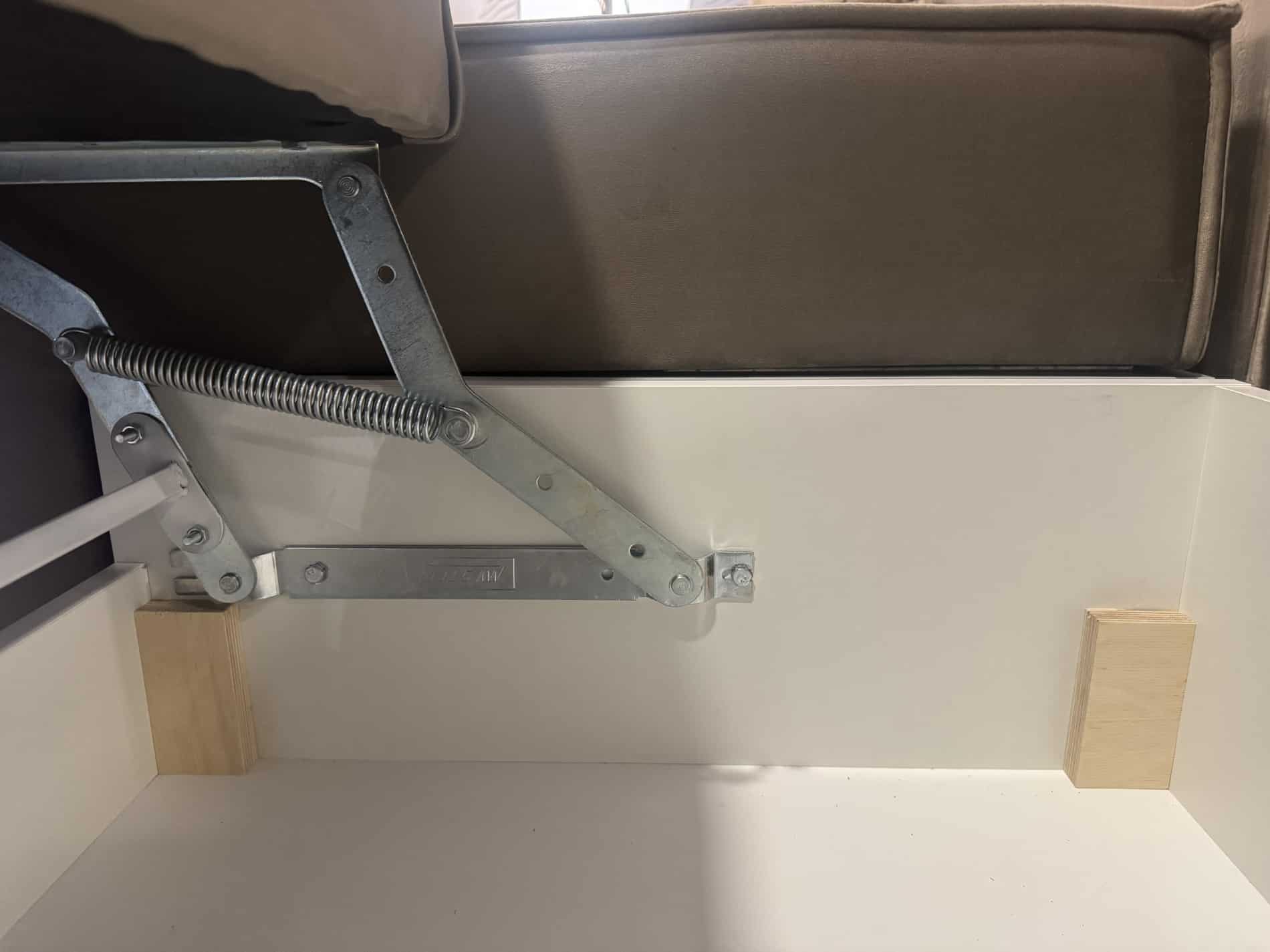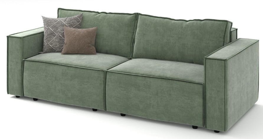 Cadrul este confecționat din PAL și Placaj. Picioarele din plastic sunt durabile, si ofera siguranță și stabilitate. Are o ladă generoasă pentru a depozita pilote, perne și lenjerii de pat. Accesul către lada pentru lenjerie este facilitat de mecanisme metalice foarte rezistente în timp; Pernele decorative amplifică starea de relaxare și oferă susținere coloanei vertebrale. Pentru a-și menține cât mai mult timp forma inițială, pernele sunt umplute cu poliuretan mărunțit învelită într-o husă de căptușeală.