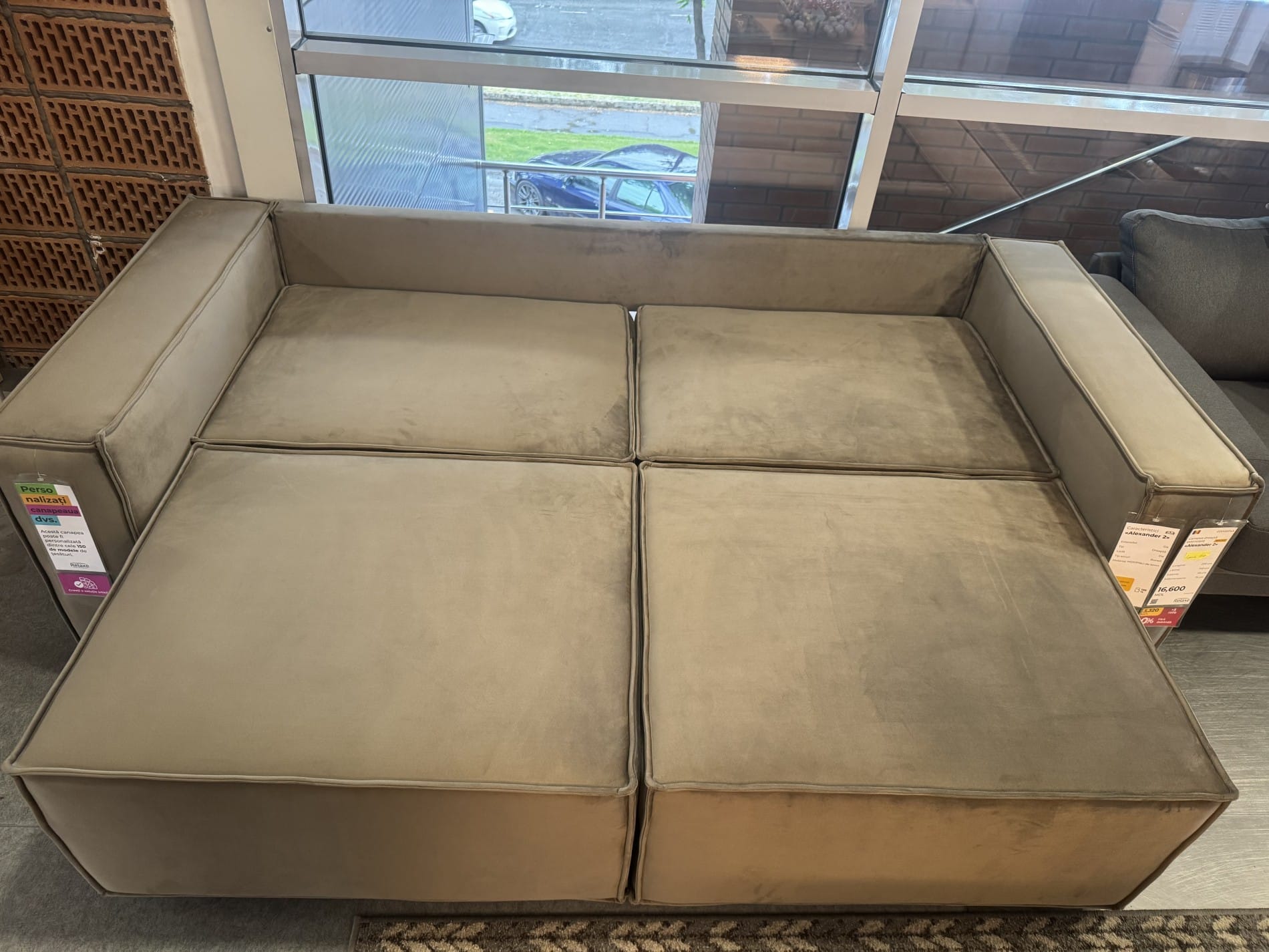 Culoare: La comanda, canapeaua poate fi produsa pe diverse tipuri de tapiterie si culori.
