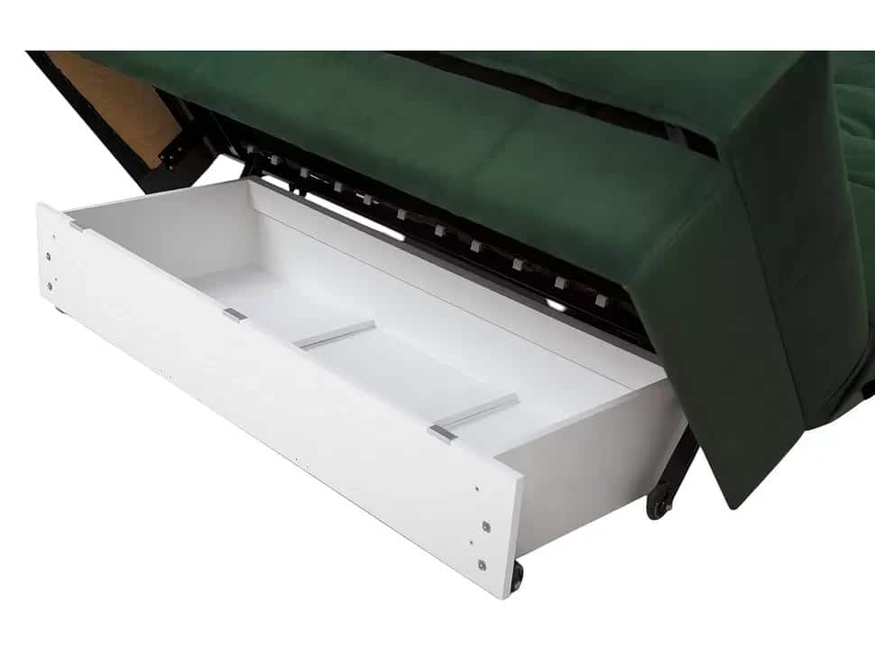 În plus, canapeaua dispune de o ladă de depozitare practică, perfectă pentru a păstra lenjeria de pat, pernele sau alte obiecte utile, economisind astfel spațiu în locuință.