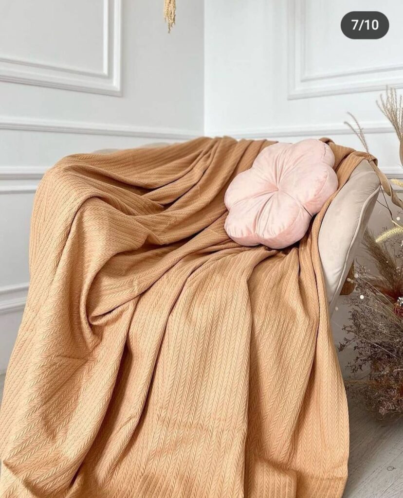 Cuvertura de pat a fost creată pentru confortul dumneavoastră de către producătorul turcesc din material textil de înaltă calitate și moale, realizat sub formă de tricotaj.
