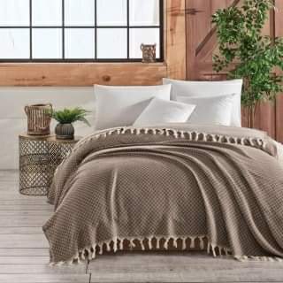 Cuvertura de pat a fost creată pentru confortul dumneavoastră de către producătorul turcesc din material textil de înaltă calitate și moale, realizat sub formă de tricotaj.