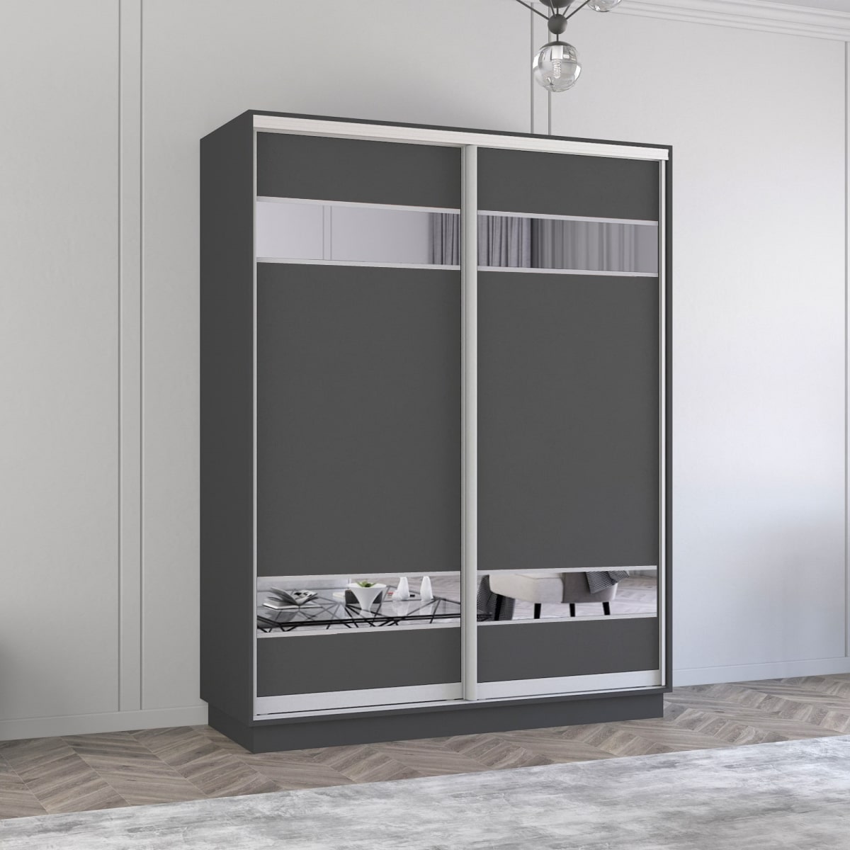 Dulap Fox (1.9m – 2.3m) uși glisante din PAL cu elemente din oglindă