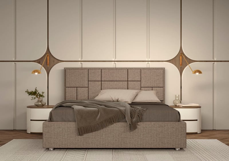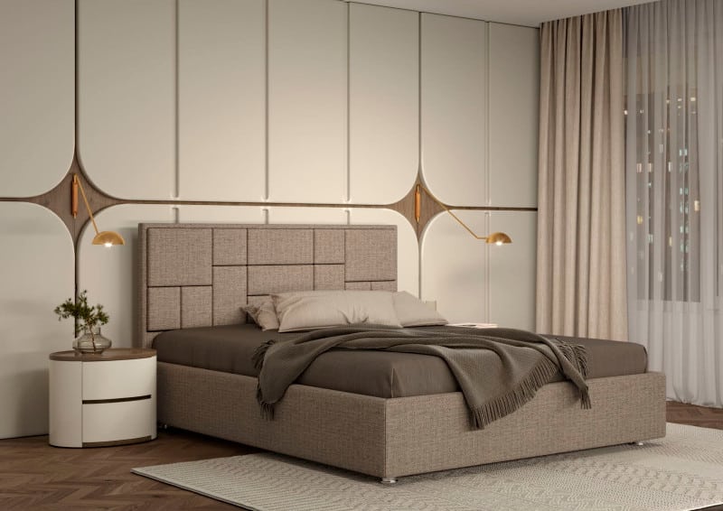 Modelul este realizat în conformitate cu tendințele moderne și este disponibil în diverse variante de tapițerie. Un element de originalitate îl reprezintă tăblia lată și moale, decorată cu un model geometric.