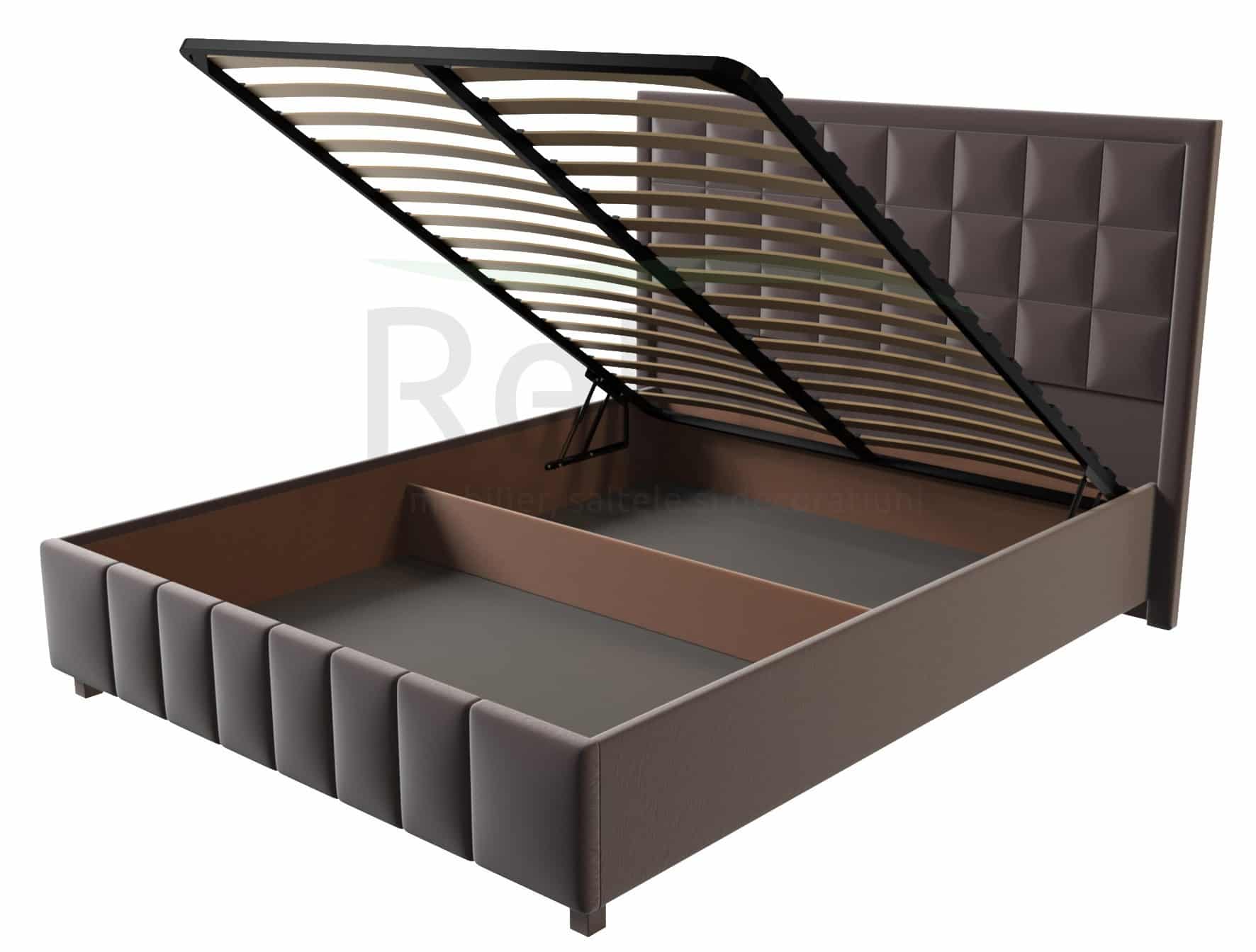 Descoperă rafinamentul cu patul nostru tapițat, ales fie într-o țesătură moale, fie într-o eco-piele sofisticată. Cu mecanism de ridicare, o ladă spațioasă pentru depozitare și lamele premium. O varietate generoasă de culori, de la stofă la eco-piele, iar dimensiunile personalizate sunt la dispoziție. Stilul tău, măsura ta!