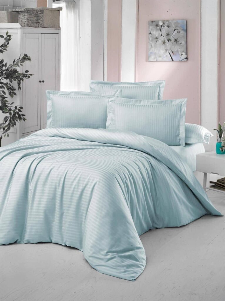Lenjeriile de pat din satin deluxe sunt calitative si rezistente. Orientate spre zona lenjeriilor de lux, acestea exceleaza la capitolul eleganta si rafinament. Lenjeriile de pat din satin deluxe sunt foarte potrivite persoanelor cu pielea sensibila, intrucat tesatura absoarbe umiditatea corpului in timpul somnului, permitand pielii sa respire, oferind un somn linistit.